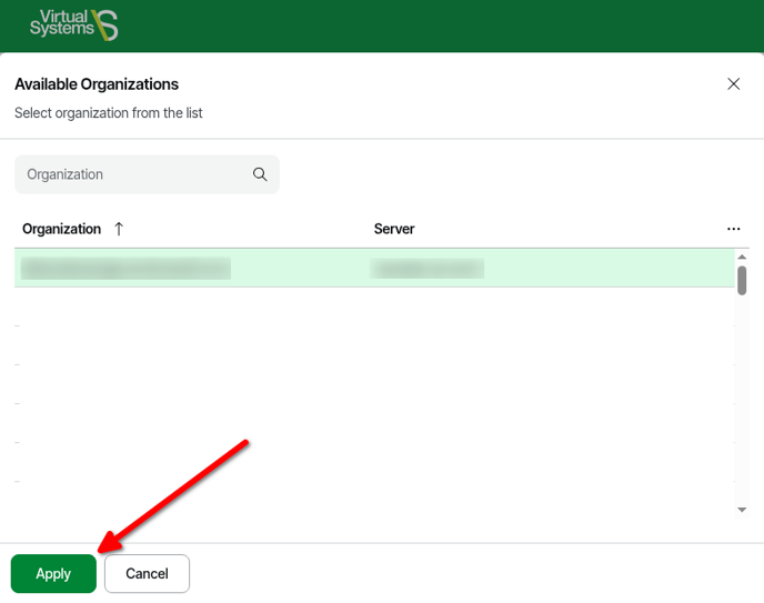 - Select your M365 Organization > click Apply. *If you don't see an organization, connect your M365 Organization Configuration with the steps here.