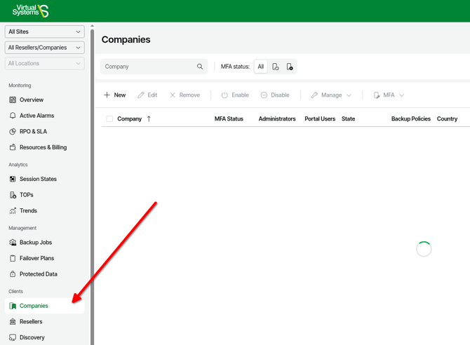 - Click on Companies in the left navigation.
