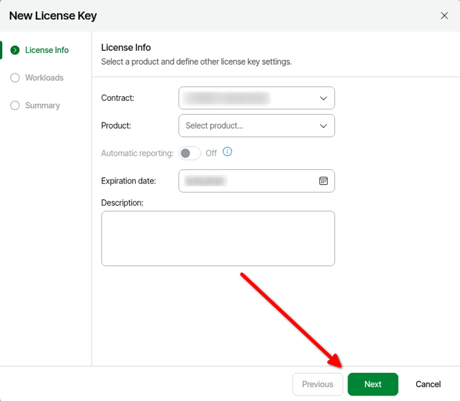 - Expiration date - Leave the expiration date as is. This date is Virtual Systems Veeam Rental date and NOT the end date for the customer license. The date on the license should auto update in annual increments. A Veeam rental license can be revoked at any time even with a longer expiration date.