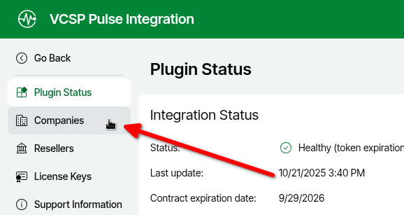 - After the company has been created in VCSP Pulse, it should show as Mapped. Now, click on License Keys in the left navigation.