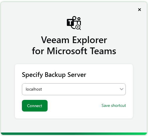 - When the Veeam Explorer for Microsoft Teams opens, select localhost > click Connect.