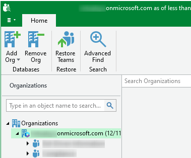 - You will now be able to browse, search, and restore your Microsoft 365 Teams data by expanding the organization under Organizations in the left navigation.