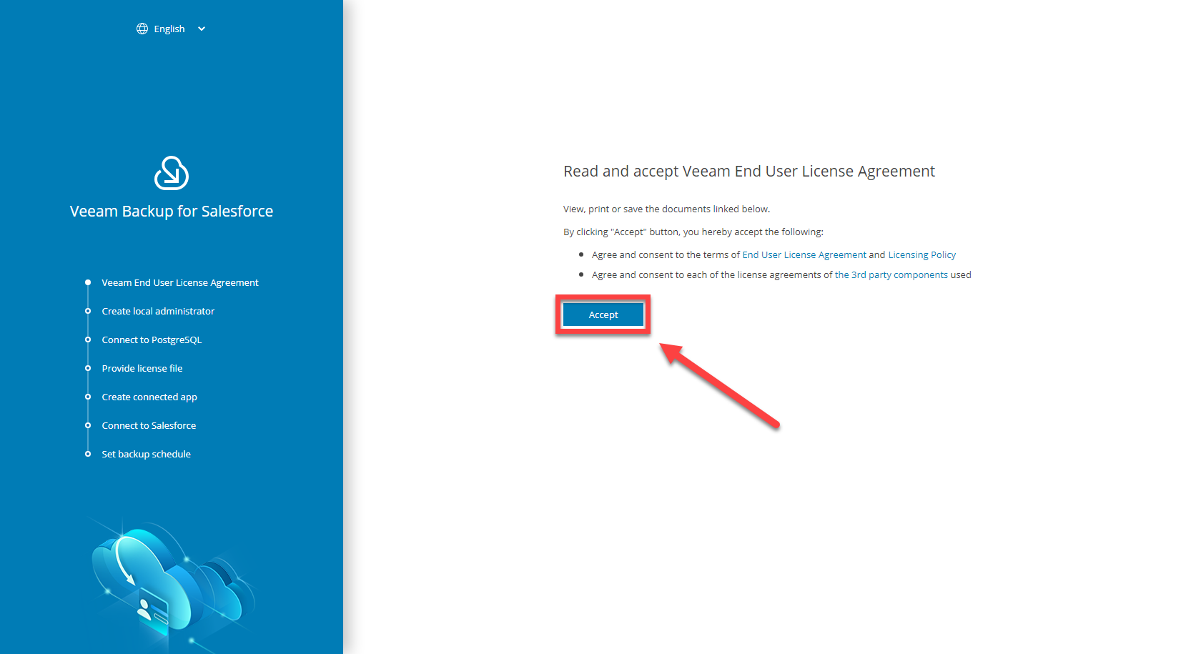- On the Veeam End User License Agreement step, review the agreements and if you agree, click Accept.